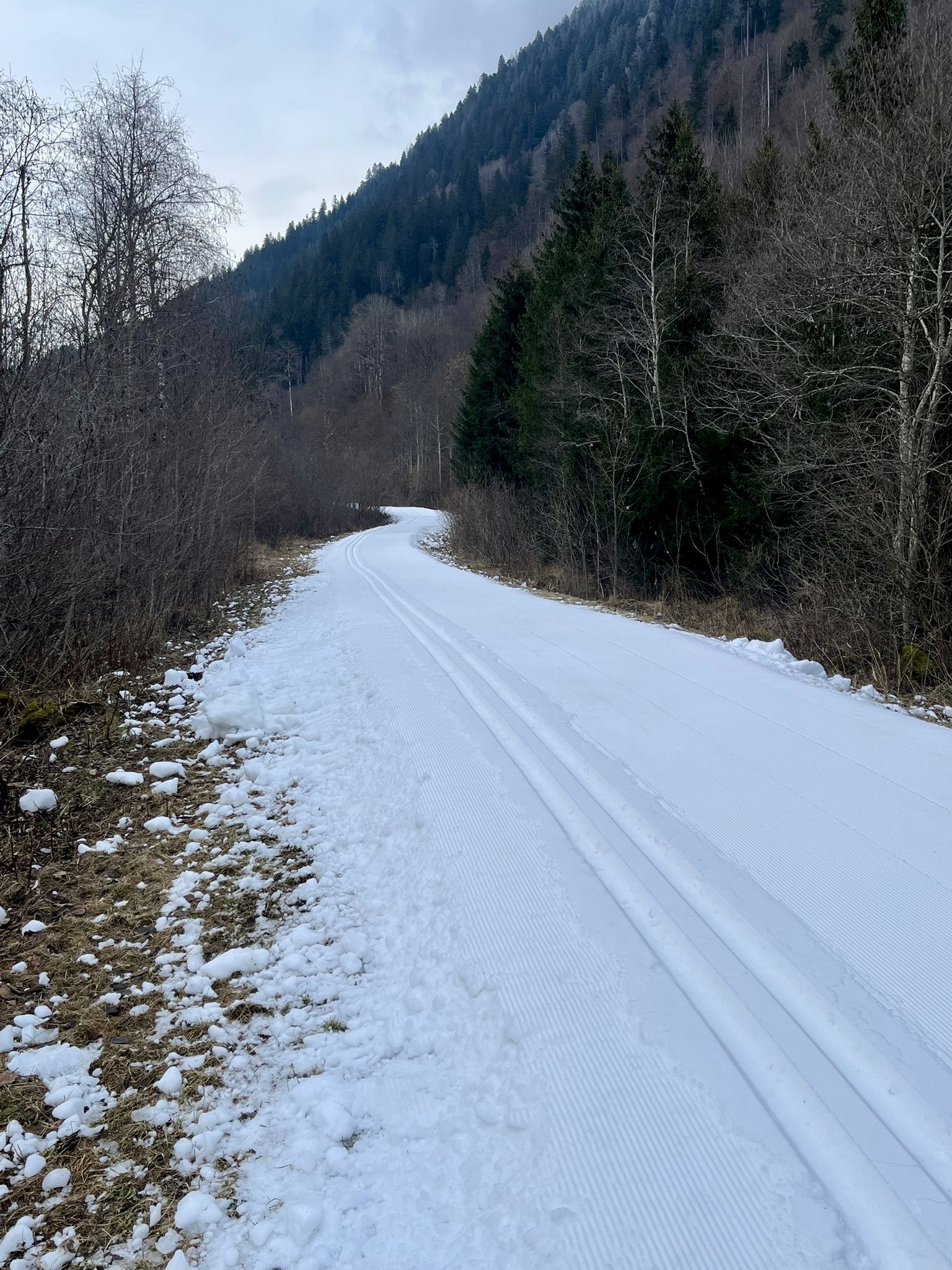 Die Loipe in Fontanivas ist offen. Präpariert ist eine 1.1km Runde für Klassisch und Skating.